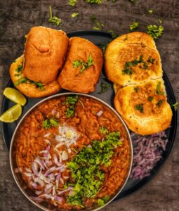 A spicy mashed vegetable curry served with buttery toasted buns, onions, and a squeeze of lemon. It’s rich, hearty, and one of the most comforting street foods in India.